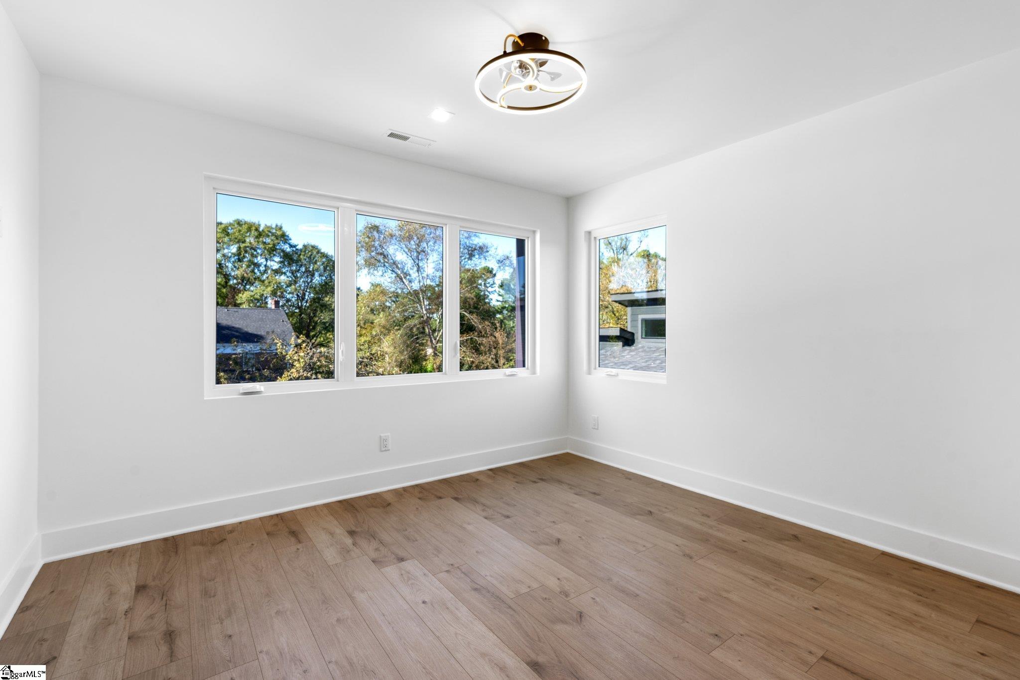 Welcome to Parkins Mill Village! The city of Greenvilleโs hottest modern subdivision featuring ALL MODERN HOMES. PMV is the first modern subdivision in the Greenville area of its kind. This eco-friendly, modern home features 2,488 square feet, a sleek structure, open floor plan, conversation starting lighting and recycled materials, beautiful design elements and sustainable living. Ask to see the extensive custom features list. The sustainability, energy efficiency highlights are a 30 Whirlpool induction electric range, a complementary ceramic 12 piece cookware set and Norwex cleaning package. The powder room countertop is by Glass Eco Surfaces using recycled glass from residential drop sites and Charleston SC restaurants, landscaping by Your Living Landscape using native plants to build an eco-system that supports pollinators and other local wildlife and reducing water usage, EZO Bord on the drop zone uses recycled PET, low/no VOC spray foam insulation, LED lighting throughout the home, tankless natural gas water heater, high efficiency Trane 3.5 ton HVAC natural gas system to include 2 zones with WIFI enabled thermostats, pre-installed electrical chase running from the attic to the crawlspace for future rooftop solar panel system, pre-installed dedicated circuit running to the garage for future EV charging station, South-facing home, passive solar will keep the house warm in the winter through the use of the large front facing windows and brick veneer. Highlights include Sierra Pacific all vinyl casement windows with Low E, insulated glass, custom Arkansas pine tongue and groove ceilings on all porches, stained and sealed, Therma-Tru exterior doors with full-view smoked glass, commercial grade gutter system, irrigation system, 9' high ceilings on the main floor with 8' tall doors, 8' high ceilings on 2nd level, red oak stair treads and landings, custom wood/tile fireplace with built-in cabinets/window seating, custom European style cabinetry, quartz countertops, waterfall feature on kitchen island, storage on both sides of island, composite single bowl sink, Cafรฉ refrigerator and dishwasher, Zephyr vent hood, contemporary light fixtures, modern fan lighting with remote controls, custom mud-in step lights, custom closet shelving, transom laundry window, ample sized bedrooms, loft, dual owners' suite closets, comfort height water closets, artistic powder room countertop and geometric wall tile, illuminated floating cabinets, acrylic tub base and soaking tub, walk-in showers and much more. This home is a trendsetter reflecting the growing demand for sustainable, eco-conscious living in Greenville, focusing on reducing the carbon footprint and promoting energy efficiency, green building, water conservation, sustainable materials, smart home technology, indoor air quality, solar and renewable energy. All construction waste sustainably managed by The Green Man dumpster company. This one-of-a-kind gem is perfect for those who want and/or need to be close to downtown Greenville, in the coveted midtown Greenville, Parkins Mill area. The home is 7 miles from Falls Park, downtown Greenville, 10 miles from Prisma Health Greenville Memorial Hospital, 2 miles from Christ Church Episcopal School, 1 mile from J. L. Mann High School Academy of Mathematics, Science, and Technology, 3 miles from Beck Academy, 2 miles from Sara Collins Elementary, and across the street from the new Reedy Laurel Elementary school that is under construction. It is close to all shopping, local boutiques, restaurants, and 11 miles from Greenville-Spartanburg Int'l Arpt (GSP). There was never a price increase to this home. The home that was to be built on this lot was not built. This beautiful, custom eco-friendly, home took its place. Schedule your tour today!